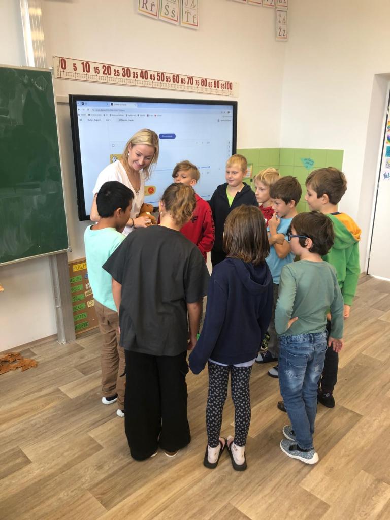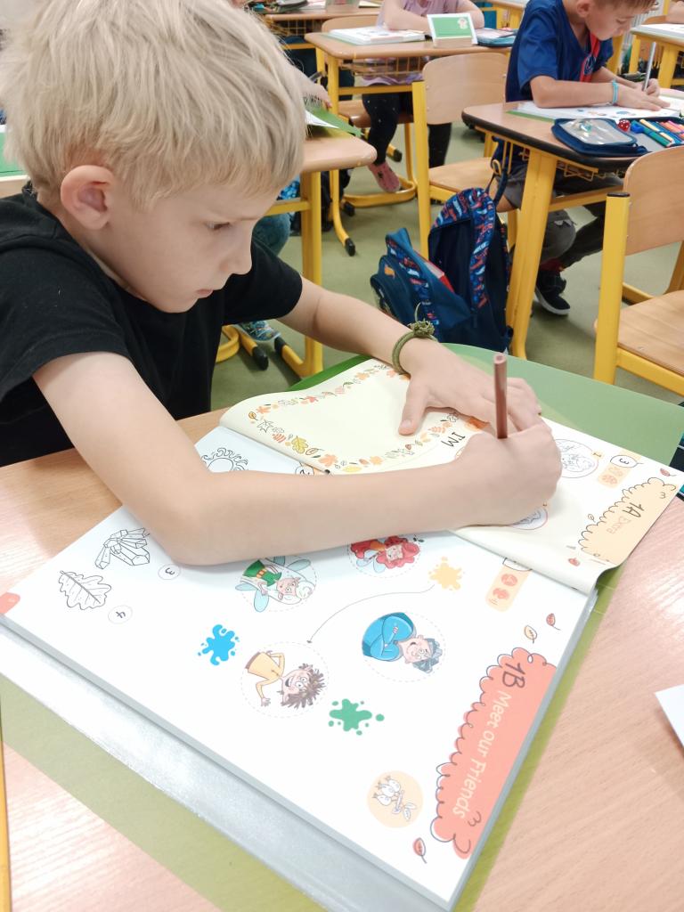 Angličtina hrou - to je naše angličtina v 1. a 2. třídě. Celým školním rokem nás provází veverka Nutty a její kamarádi skřítkové z lesa. Naši nejmladší žáci již v angličtině dokáží reagovat na jednoduché pokyny, umí barvy, napočítají do 12ti a zvládnou anglicky říct,jaké školní potřeby mají v tašce.