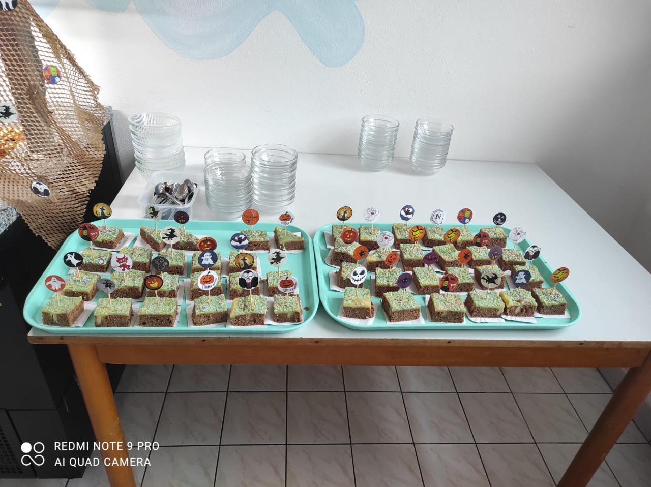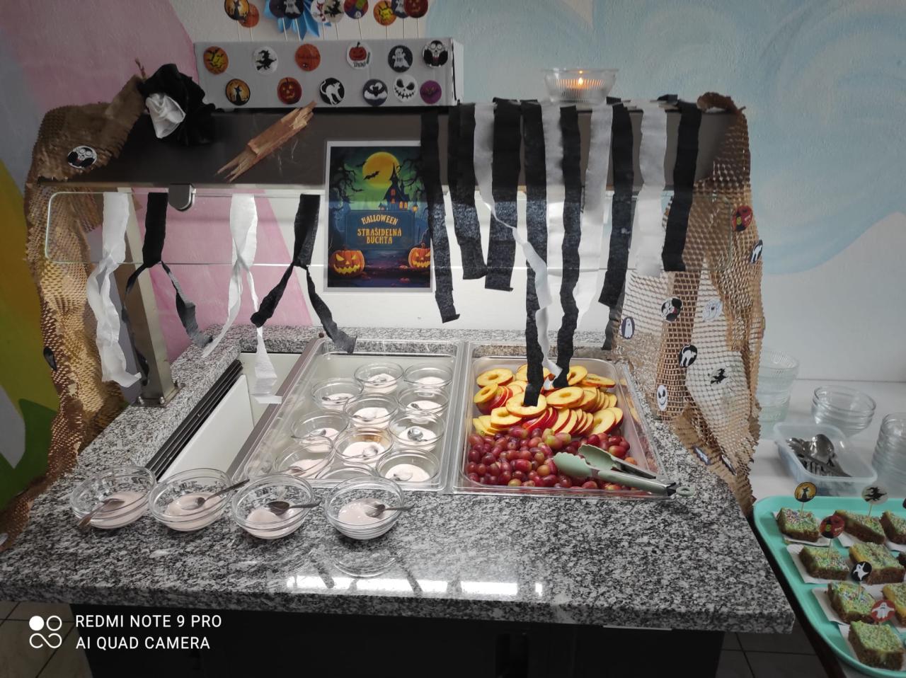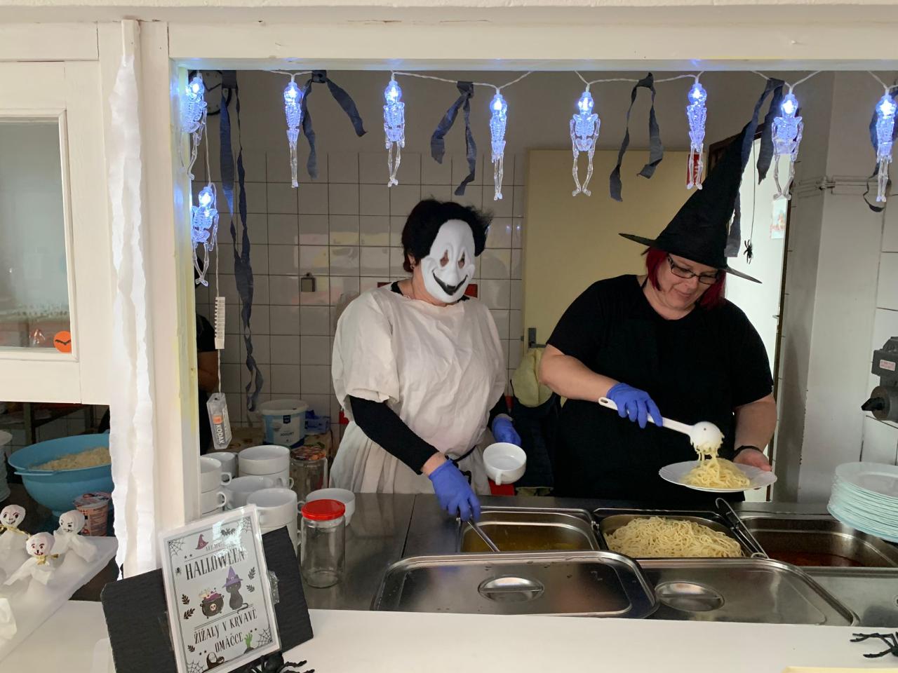 Naše paní kuchařky pro nás nachystaly pravé halloweenské menu a krásně nám vyzdobily školní jídelnu. Mohli jsme tak ochutnat žížaly v krvavé omáčce, dýňovou polévku, strašidelnou buchtu, upíři pití a halloweenské lízátko. Děkujeme!