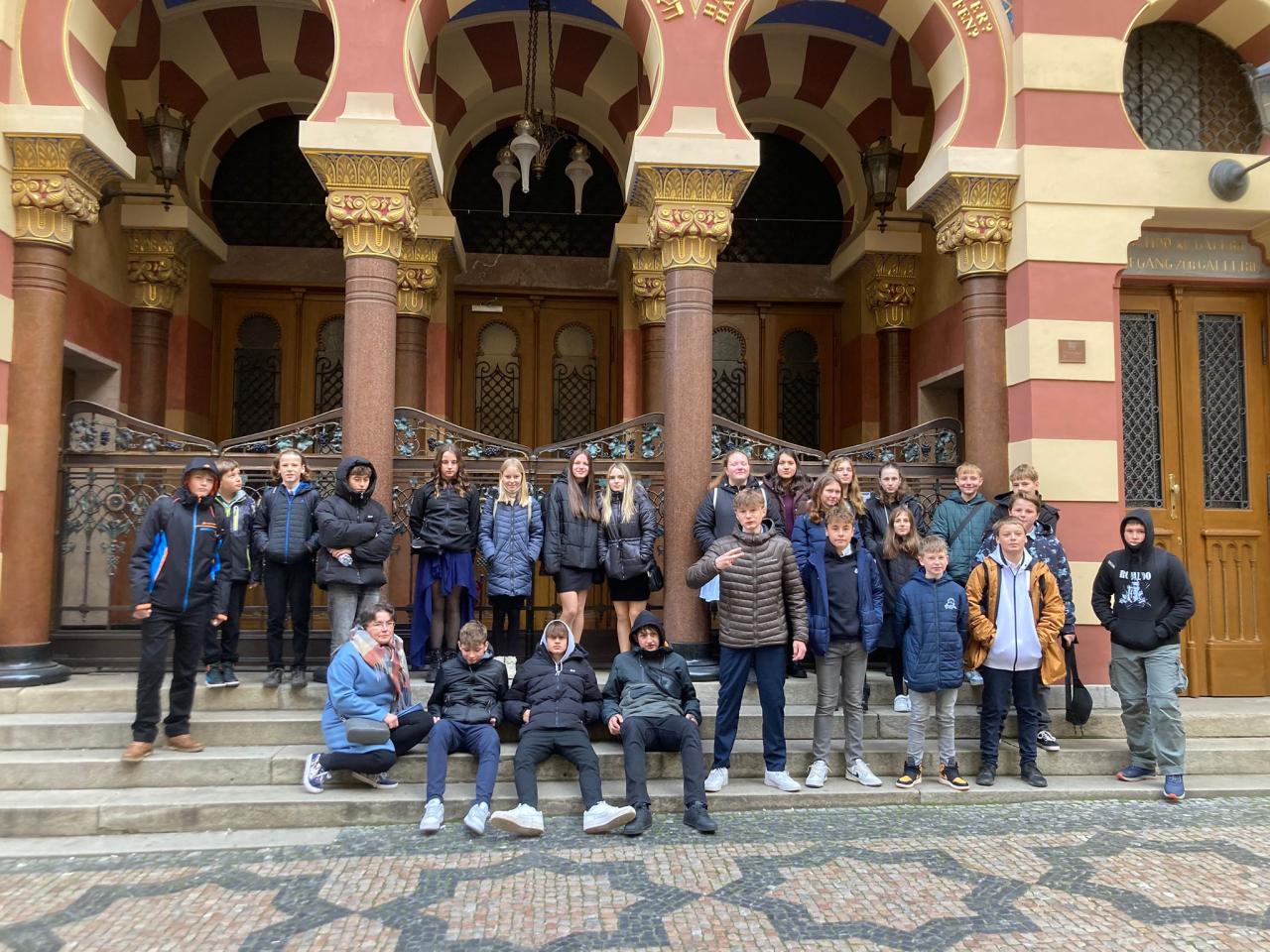 Žáci druhého stupně se v sobotu 16. listopadu 2024 zúčastnili prvního divadelního představení v rámci Klubu mladých diváků v tomto školním roce. Cestou k divadlu Broadway jsme se zastavili u Jeruzalémské synagogy a v obchodním centru Palladium. Poté jsme už natěšeně usedli do pohodlných křesel a nechali se unášet dechberoucím dějem muzikálu Troja. V hlavních rolích jsme slyšeli zpívat Milana Peroutku, Jitku Boho, Bohouše Josefa, Petra Vondráčka, Ondřeje Bábora, Tomáše Trapla, Bořka Slezáčka, Nelly Řehořovou a další. Už se těšíme na další představení.