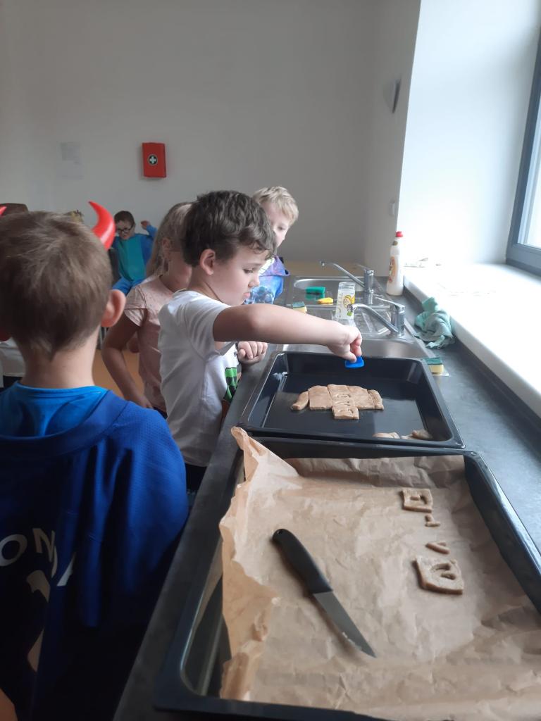 V pátek 24. října si naši prvňáčci užili zábavný Crazy den. Překvapením pro ně bylo pečení perníčků - přesněji počátečních písmen jejich jmen.