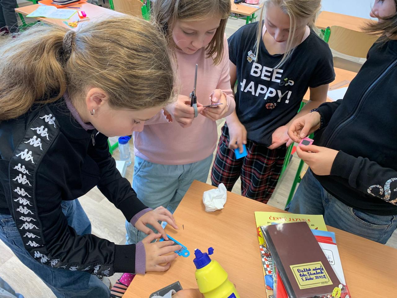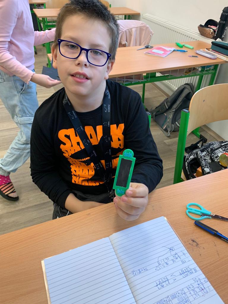 Žáci si v modelovacím programu Tinkercad vytvořili návrh pro 3D tisk. Po vytisknutí si na destičku nalepili brusný papír. Destičku budou využívat k zabrušování tuhy kružítka.