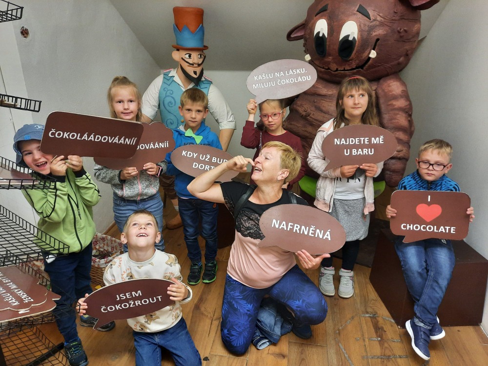 1., 2. a 3. ročník naší školy – VÝLET TÁBOR úterý 7. 6. 2022 Autobusem jsme přijeli do Tábora a v pláštěnkách prošli úzkými křivolakými uličkami na Žižkovo náměstí, kde má tento husitský vojevůdce sochu. Ukázali jsme si radnici, kostel a staré středověké domy, které lemují náměstí. Poté jsme zamířili do Muzea čokolády a marcipánu. Prohlédli jsme si čokoládové a marcipánové exponáty, prošli sklepením s perníkovou chaloupkou, s permoníky a peklem. V dílně si děti vlastnoručně udělaly z marcipánu svůj sladký výrobek, a také si mohly koupit nějakou dobrotu nebo suvenýr. Od rána silně pršelo, proto jsme se potom přesunuli znovu na náměstí do cukrárny a přemýšleli, co dál, když tak moc prší. Podařilo se nám zajistit náhradní program místo zoologické, prohlídku muzea Lega. Ve vitrínách měli z této všem známé a oblíbené stavebnice moc krásné modely. Některé z nich byly interaktivní. Také jsme se z filmu dozvěděli, jak Lego vzniklo, včetně jeho názvu. Výlet se vydařil, děti měly plno zážitků a nikdo nepromokl. Mgr. Jana Vlachová