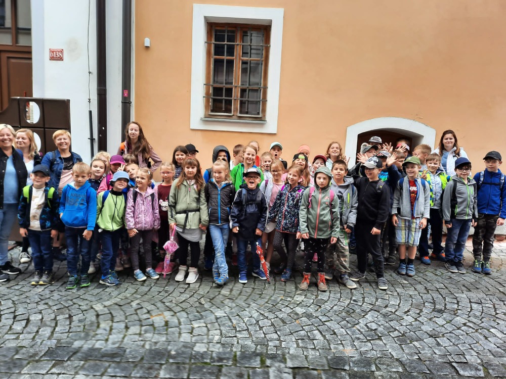 1., 2. a 3. ročník naší školy – VÝLET TÁBOR úterý 7. 6. 2022 Autobusem jsme přijeli do Tábora a v pláštěnkách prošli úzkými křivolakými uličkami na Žižkovo náměstí, kde má tento husitský vojevůdce sochu. Ukázali jsme si radnici, kostel a staré středověké domy, které lemují náměstí. Poté jsme zamířili do Muzea čokolády a marcipánu. Prohlédli jsme si čokoládové a marcipánové exponáty, prošli sklepením s perníkovou chaloupkou, s permoníky a peklem. V dílně si děti vlastnoručně udělaly z marcipánu svůj sladký výrobek, a také si mohly koupit nějakou dobrotu nebo suvenýr. Od rána silně pršelo, proto jsme se potom přesunuli znovu na náměstí do cukrárny a přemýšleli, co dál, když tak moc prší. Podařilo se nám zajistit náhradní program místo zoologické, prohlídku muzea Lega. Ve vitrínách měli z této všem známé a oblíbené stavebnice moc krásné modely. Některé z nich byly interaktivní. Také jsme se z filmu dozvěděli, jak Lego vzniklo, včetně jeho názvu. Výlet se vydařil, děti měly plno zážitků a nikdo nepromokl. Mgr. Jana Vlachová