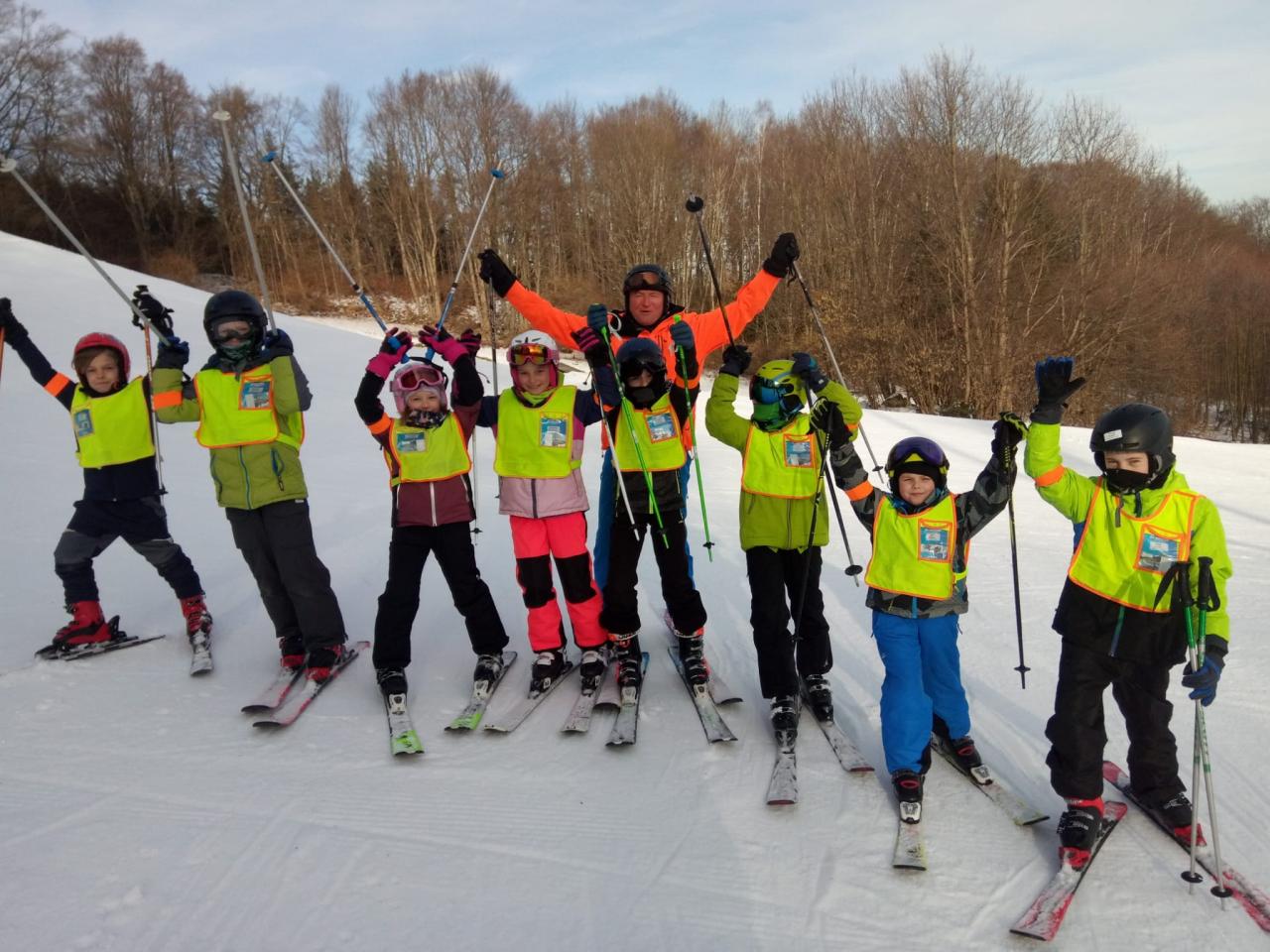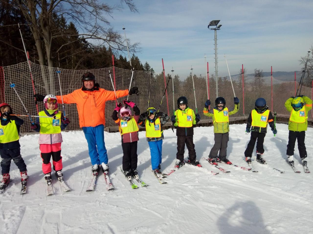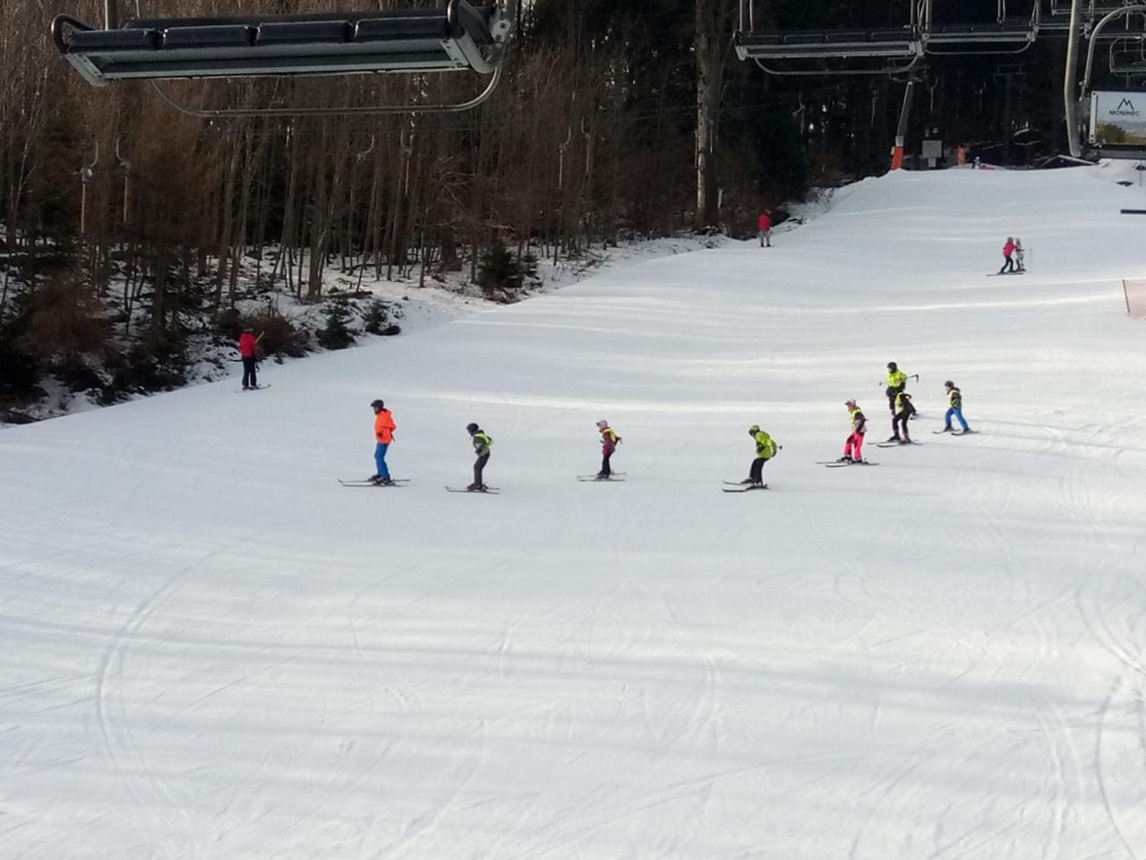 Jako každoročně, tak i tento rok, proběhl ve Skiáreálu Monínec pětidenní lyžařský kurz včetně výuky snowboardu pro zájemce z řad dětí naší školy. Celkem se kurzu zúčastnilo 46 dětí. 34 žáků z 1. 2. 3. 4. a 5. třídy, poprvé s námi letos jelo i 12 předškoláčků z mateřské školy. Přes prvotní rozpaky a obavy, že nebude sníh, vše dopadlo dobře. I počasí nám přálo. Děti si během pěti dnů osvojily základy lyžařských a snowboardových dovedností. Některé děti překonaly samy sebe a přes počáteční obavy pokročily ve svých dovednostech o jednu či více úrovní, z čehož jsme měli pochopitelně velkou radost nejen my , ale hlavně ony samy. Velkou pochvalu zaslouží naši nejmenší, předškoláčci z MŠ a děti 1. a 2. třídy. Některé děti stály na lyžích poprvé . Na konci kurzu již zdatně sjížděly obloučky malou sjezdovku. Opomenout nesmíme ani starší děti, které se na konci kurzu proháněly na velké sjezdovce.. Vrcholem výcviku byly páteční závody, na které se mohli přijet podívat i rodiče . Děti si mohly ověřit své dovednosti v soutěžních podmínkách. Odměnou jim byl medaile a diplomy. Zdeňka Holá