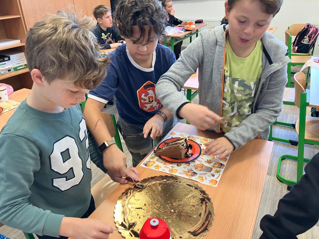 Poděkování dětem od spolužačky Štěpánky za pomoc v období rekonvalescence po náročné operaci nohy. Dětem poděkovala i její maminka. Dort byl výborný ????