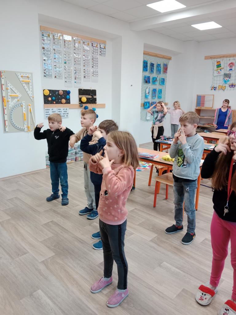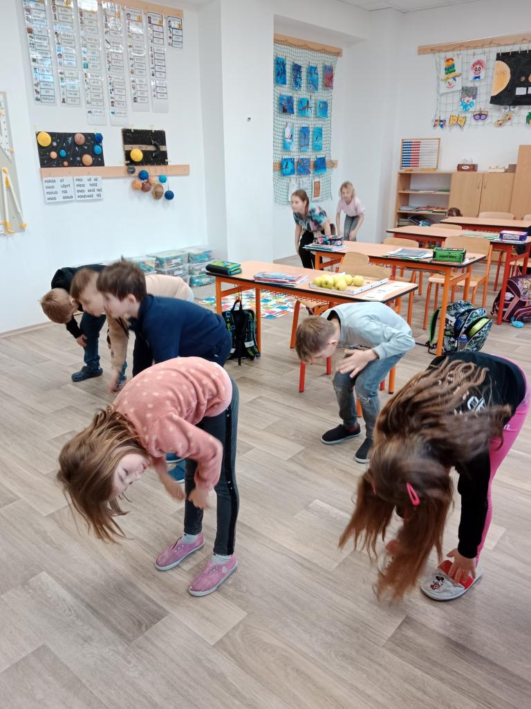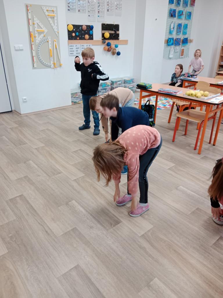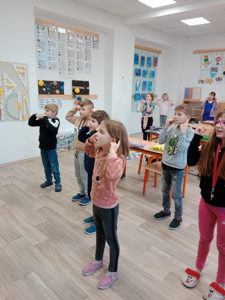 Děti si zopakovaly části těla hravou formou - zatančily si na písničku a protáhly své tělo při básničce s ukazováním.