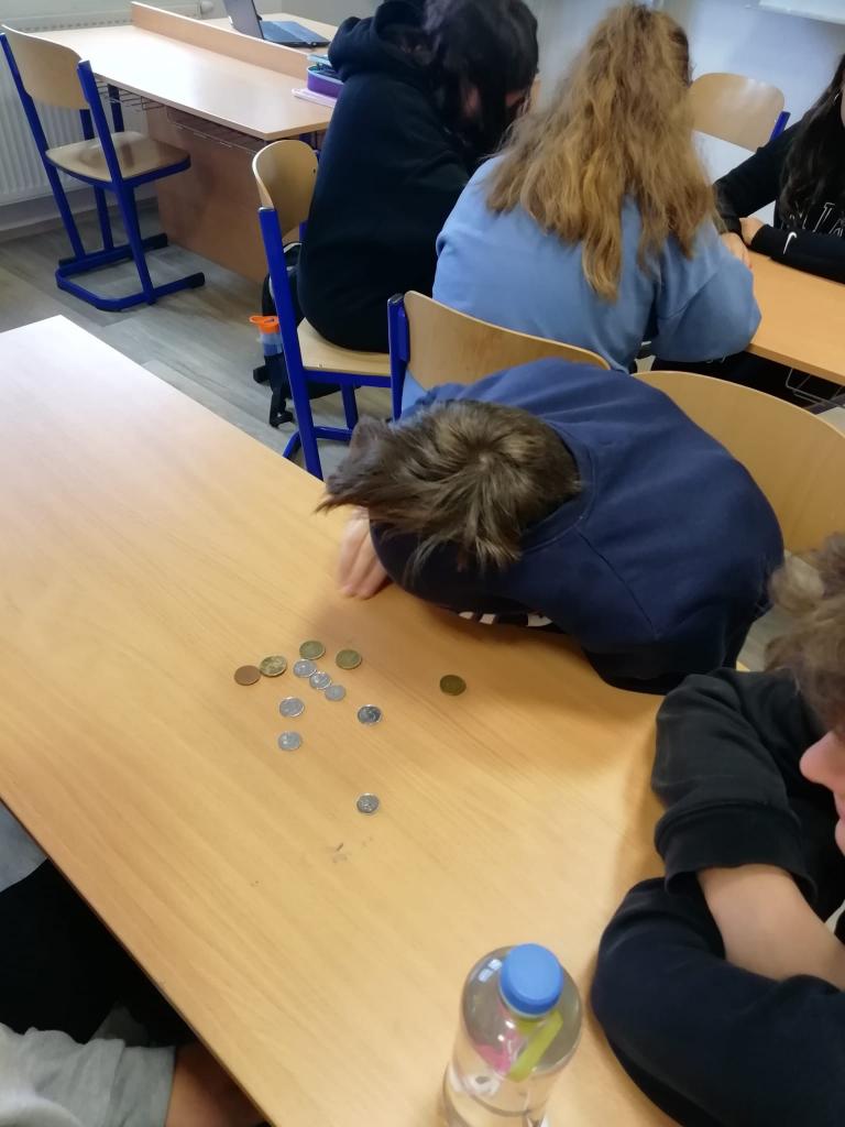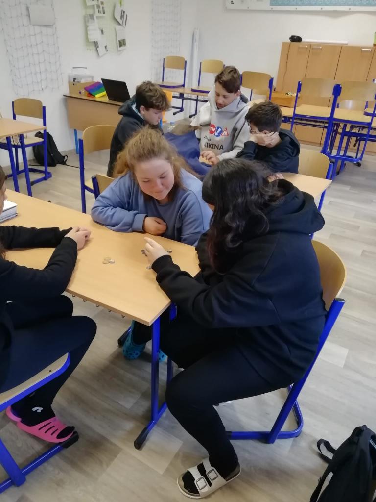 Děti poslepu rozpoznávaly bankovky a mince.